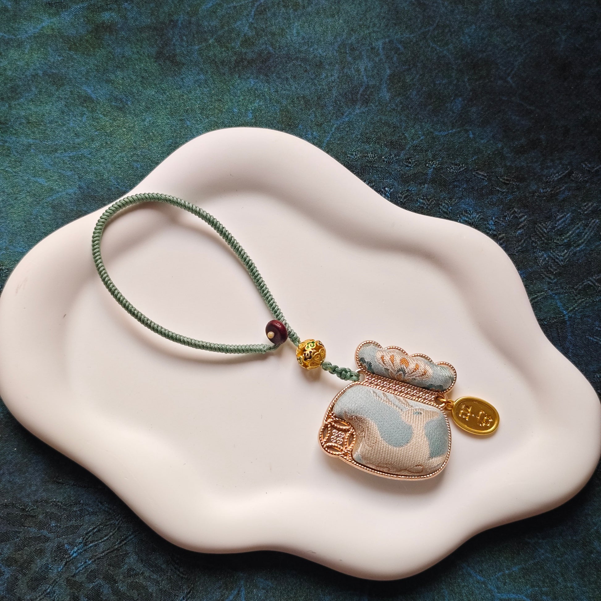 A handcrafted Song Brocade charm, inspired by classical auspicious forms.
